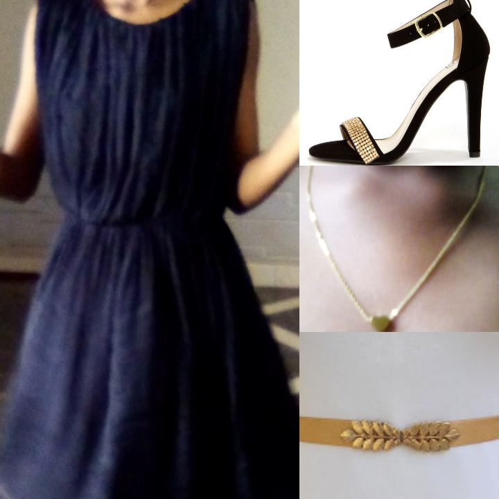 You can always add a little gold piece to your outfit for glam . A gold belt , a gold chain necklace and a pair of cute ankle strap heels will perfect the look. You can wear this outfit to a party or to church .