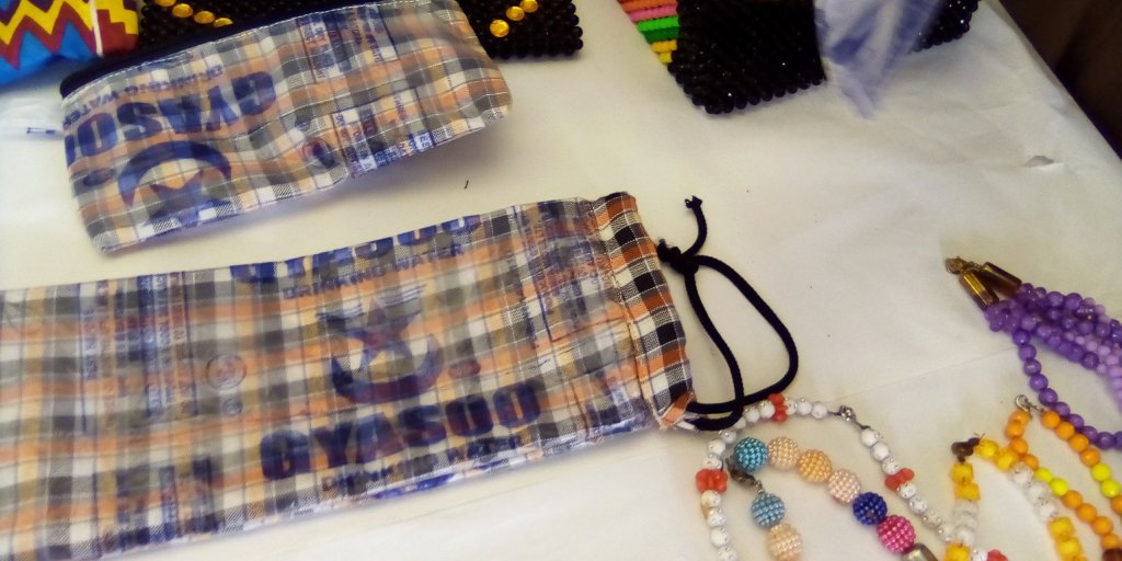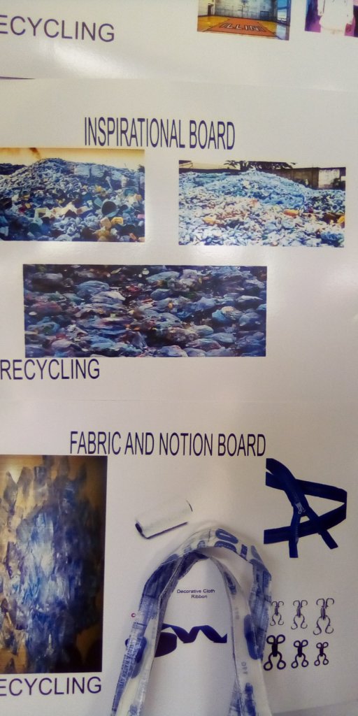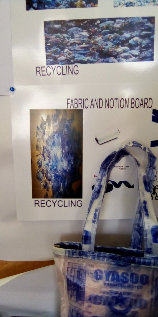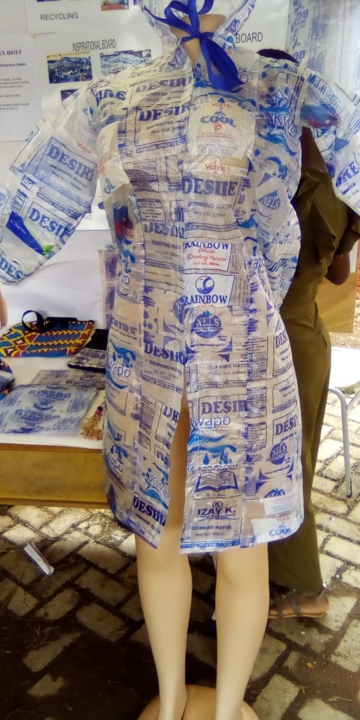 The work I really adored was the one on recycling. The designer made artefacts and designs from recycled plastic water bags .