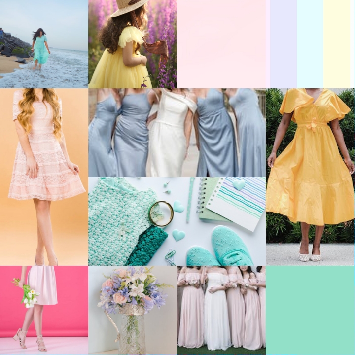Pastel colours are basically lighter shades of all colours. They are made by tinting (mixing white into other colours to make them look pale and soft ). For instance: tinting green will give you pastel colour- Mint, tinting blue will give you Baby/Powder blue. Lavender, blush, millennial pink, lemon and others form part of this category too.